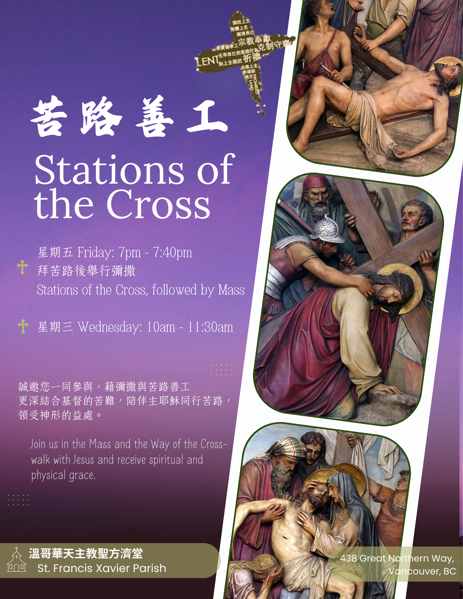 Sunday Cantonese Mass 粵語彌撒: 8:00am, 9:30am
